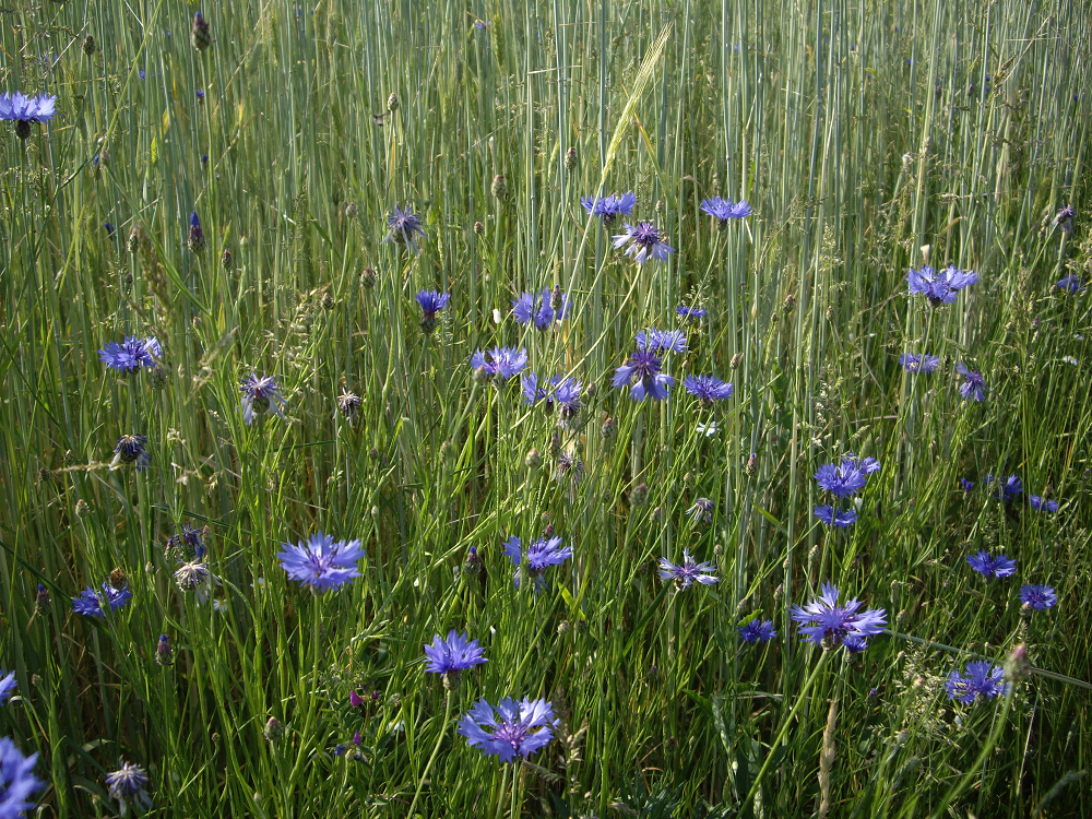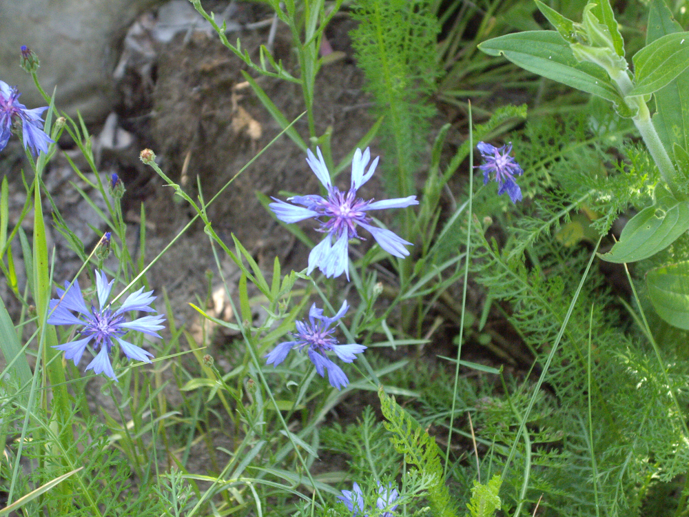 Kwiatostan w postaci koszyczka na długich szypułkach z podłużnie jajowatą okrywą, długości 10–15 mm; lejkowate, niebieskie do ciemnofioletowych.