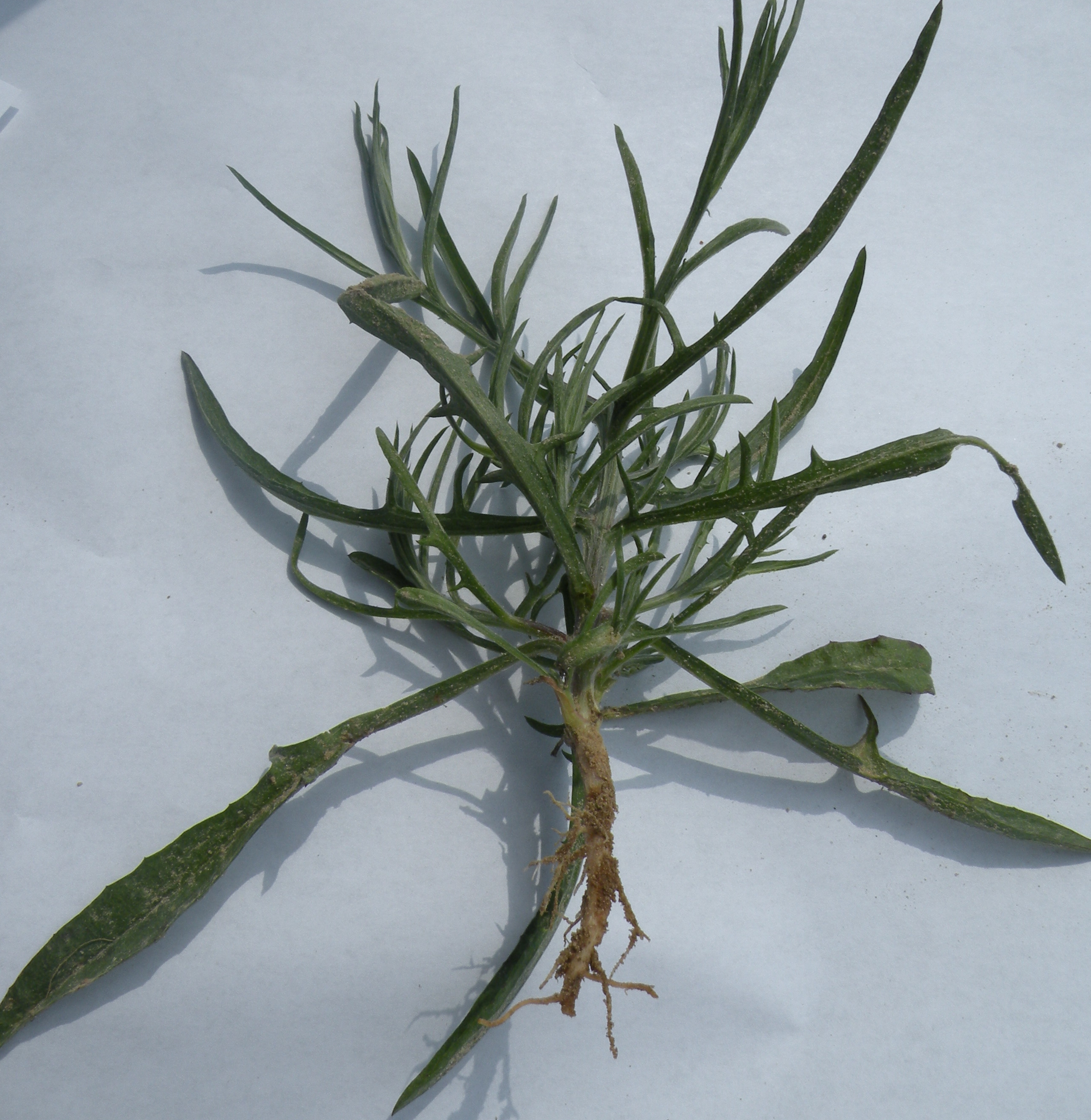 Liście siedzące, równowąskie lub równowąskolancetowate; szarozielone, pokryte długimi i gęstymi włosami.