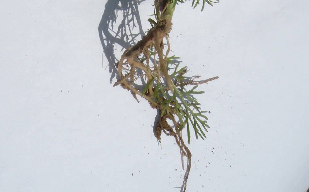 Korzeń pojedynczy wrzecionowaty lub liczne korzenie zbliżone pokrojem do wiązkowatych w zależności od zwięzłości podłoża.