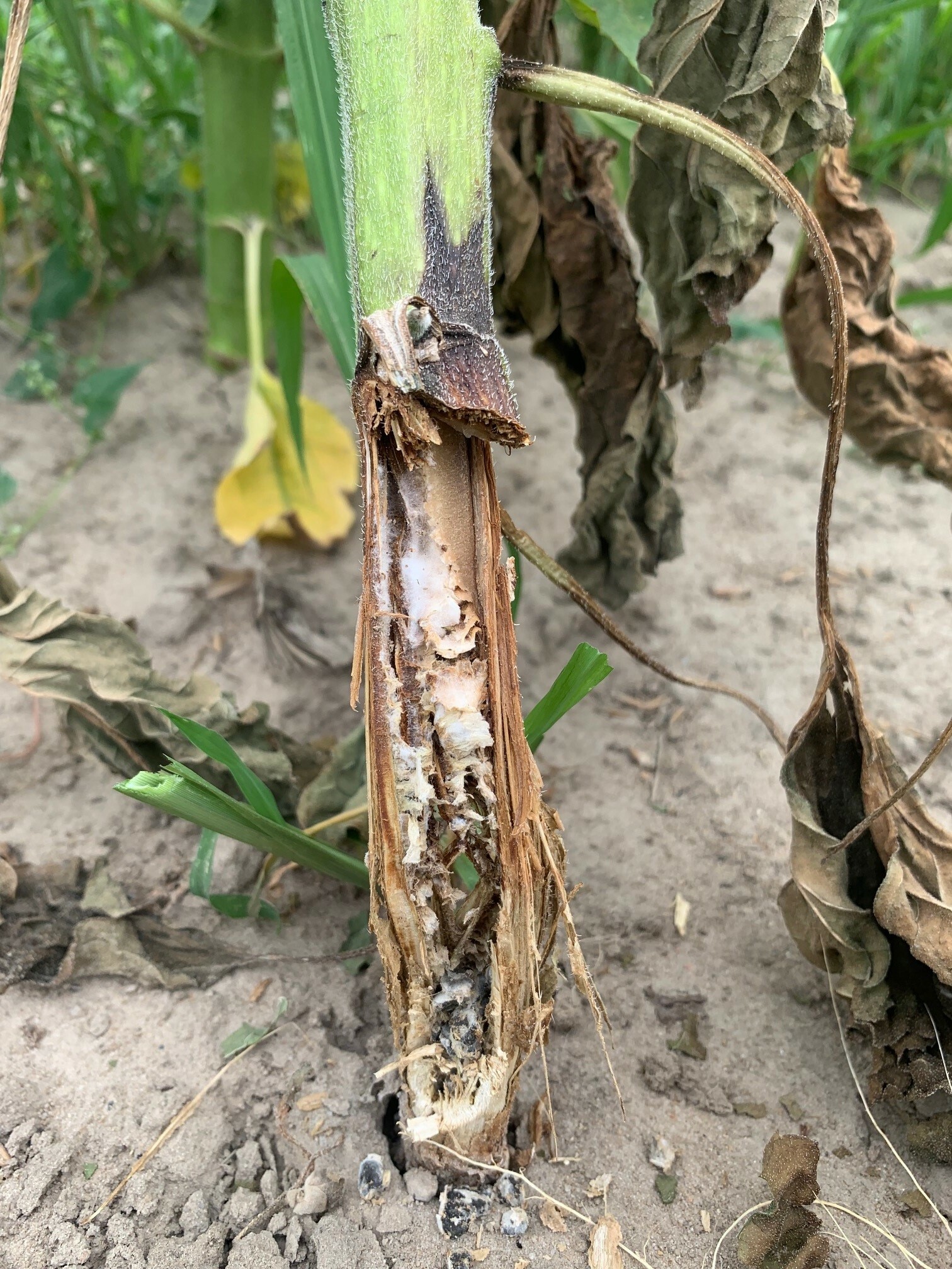Instytut Ochrony Roślin – PIB w Poznaniu przypomina, że wśród wielu gatunków, które mogą wystąpić na plantacjach słonecznika w Polsce należy przede wszystkim zwrócić uwagę na sprawcę zgnilizny twardzikowej (Sclerotinia sclerotiorum). Choroba ta może być w naszych warunkach agroklimatycznych przyczyną największych strat gospodarczych, tym bardziej, że ten organizm chorobotwórczy jest polifagiem, a więc może porażać wiele gatunków roślin. S. sclerotiorum tworzy struktury przetrwalnikowe (sklerocja), które mogą pozostawać w glebie przez wiele lat, będąc zagrożeniem dla wszystkich upraw roślin podatnych, w tym rzepaku, słonecznika, bobowatych itd. Niebezpieczeństwo infekcji i rozwoju organizmów chorobotwórczych rośnie szczególnie w warunkach podwyższonej wilgotności gleby i powietrza. W konsekwencji może dochodzić do obniżki jakości i ilości plonu. W tym sezonie na rzepaku ozimym obserwowano pod koniec dojrzewania, szczególnie na niechronionym, silne porażenie przez S. sclerotiorum. Podczas lustracji pól słonecznika jeszcze przed kwitnieniem również zaobserwowano pierwsze objawy infekcji. Miały one charakter zgnilizny przykorzeniowej, w postaci jasnoszarych, rozległych plam z brunatną obwódką. Na plamach tych może pojawić się biała grzybnia patogena oraz sklerocja. Porażone łodygi stopniowo zasychają. W celu potwierdzenia porażenia przez omawianego patogena warto rozciąć łodygę w miejscu objawów, jeżeli wewnątrz będzie obecna biała  grzybnia i czarne sklerocja, to dowód na wystąpienie choroby.  Zalecamy zatem w tej chwili częsty monitoring plantacji, ponieważ w przypadku wystąpienia pierwszych objawów należy niezwłocznie zastosować odpowiedni fungicyd w celu ograniczenia zagrożenia ze strony zgnilizny twardzikowej i ewentualnie innych chorób.